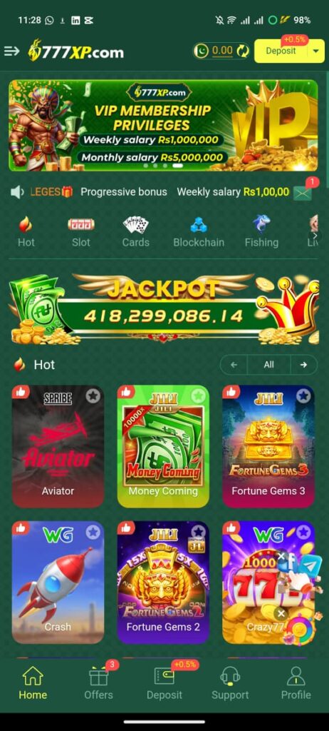 777XP Game is an online casino-style gaming platform that allows users to play, win, and earn real cash rewards. The app combines entertainment with income opportunities, offering games like slots, lucky draws, cards, color prediction, and more — all designed to give you a thrilling experience while giving you a chance to earn.