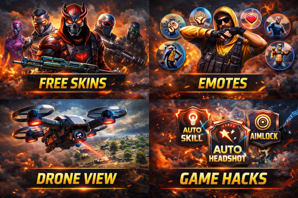 In short, Badge99 FF Injector APK is a feature-rich Android tool created for Free Fire fans who want to enhance their gameplay without spending money. It offers unlocked skins, special effects, drone view cameras, and other useful features without requiring root access or official login.