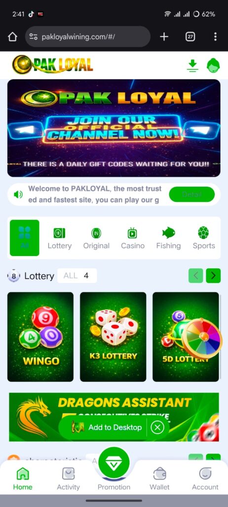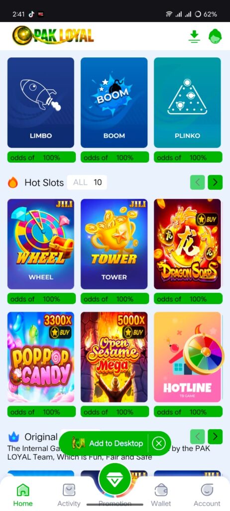 Pakloyal Game is an online earning game that is getting popular among users who want to earn real money while enjoying mobile games. This game offers casino-style entertainment where players can play different games, test their luck, and earn cash rewards.